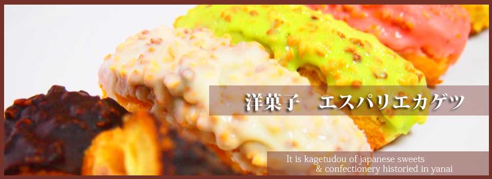 柳井市で愛され続けたスイーツ エスパリエカゲツ、銘菓 華月堂(かげつどう)の和菓子、柳井の地に花開く、エスパリエカゲツの洋菓子・ケーキ、「現代の名工」にも選ばれた菓子職人技術と匠の技で作り上げる、和菓子・洋菓子、また食材にもこだわり、食の安心・安全をご提供しています。